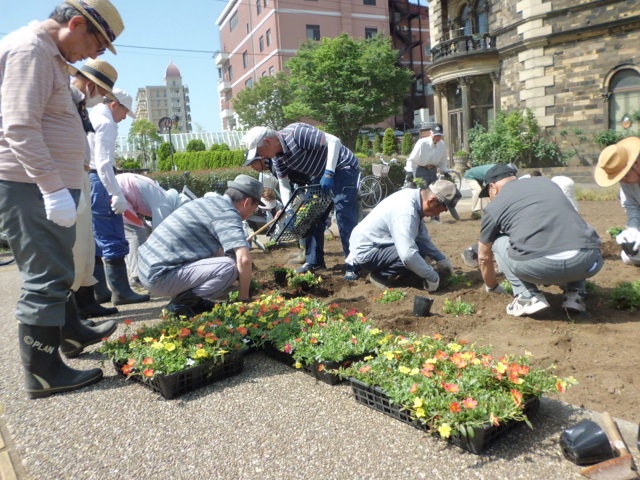 本日、松原老人クラブの皆さまにご協力いただき、公園南花壇のお花を植え替えました。