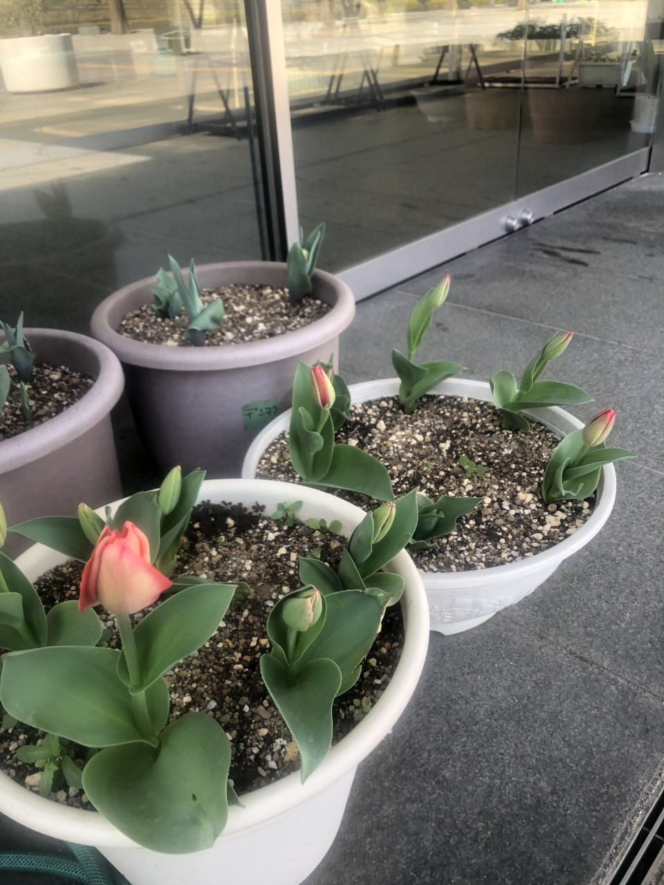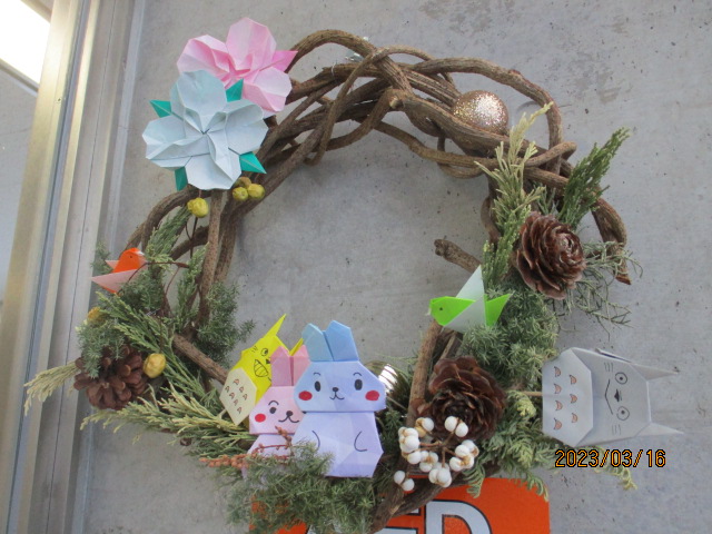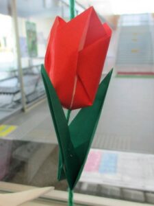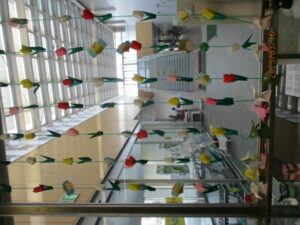 馬入の受付にもチューリップの飾りのれんがかわいく咲いています。