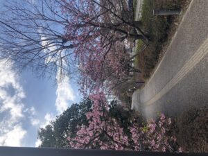 馬入ふれあい公園の河津桜がピンク色の花を咲かせています。