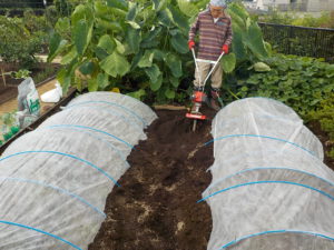 本日は、近隣のイベントに提供する冬野菜の種まき、耕運機による作業を