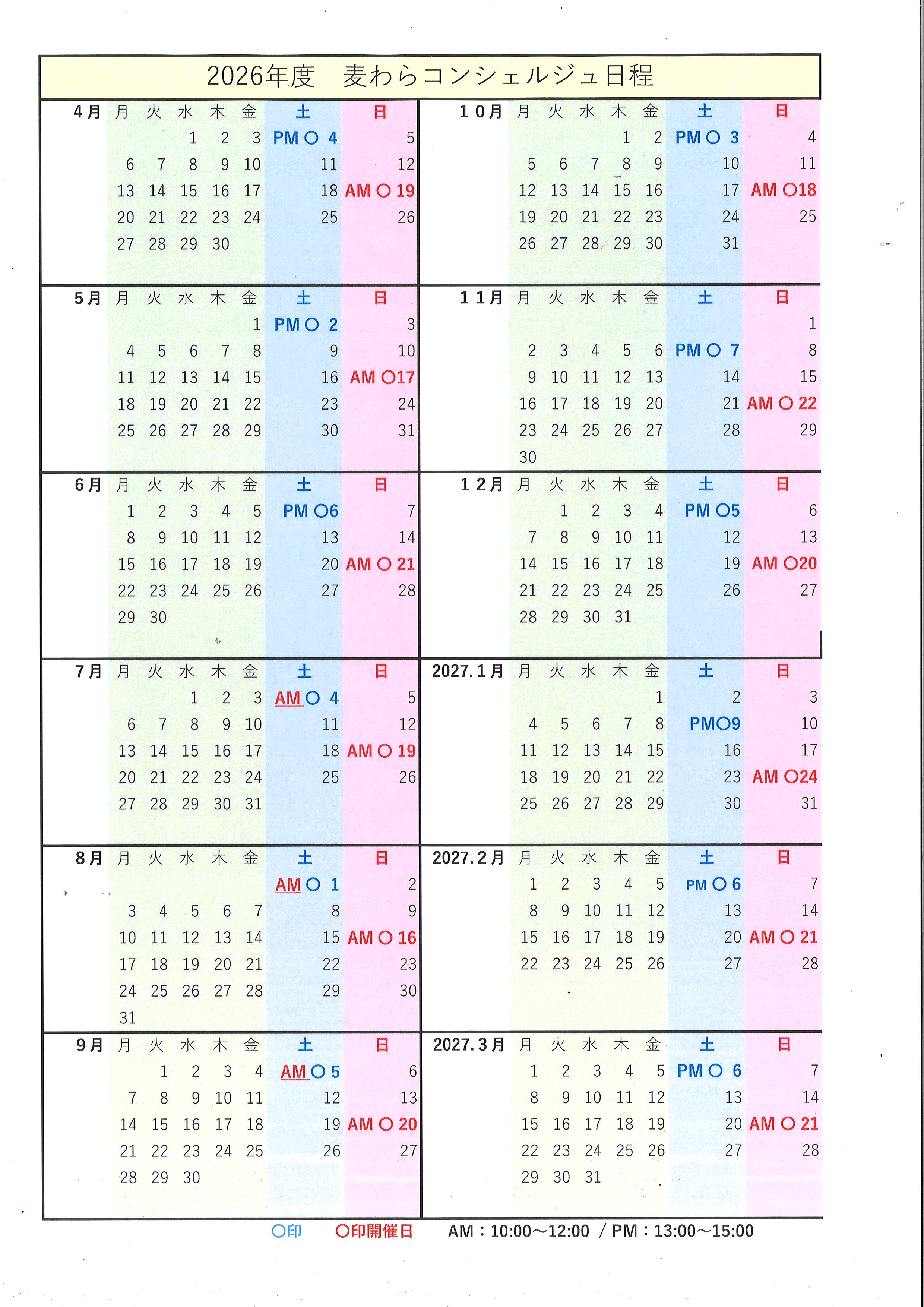 2026年度(令和8年度)麦わらコンシェルジュ年間日程表