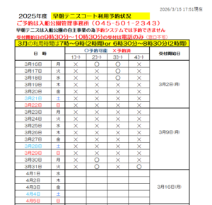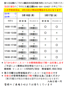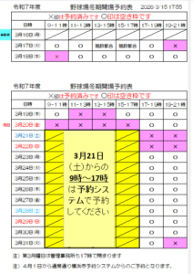 - 冬期野球開場予約の空きについて