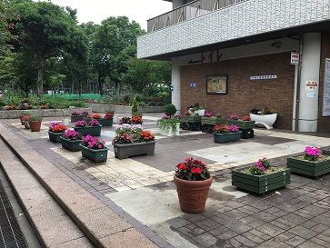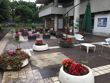 事務所前にたくさんのサンパチェンスのプランターが!!