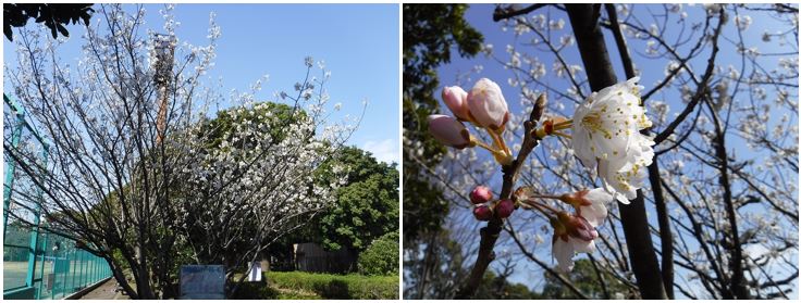 野球場の横に1本だけあるコヒガンザクラが一足早く綺麗に咲いています。