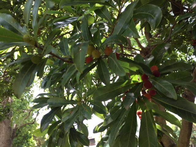 入船公園にたくさん植栽されているヤマモモが色付始めました。