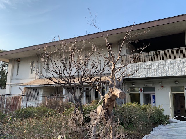 入船公園管理事務所横にある早咲きの梅が1本咲き始めました。