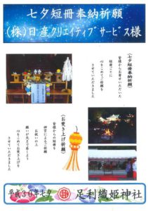 七夕イベントの際はご参加いただきありがとうございました。 皆さんに書いていただいた短冊の奉納祈願が足利織姫神社にて行われました。