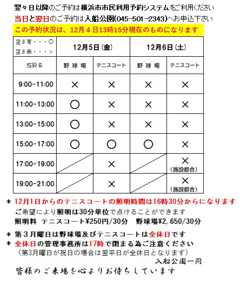 [テニスコート][施設の空き情報][野球場]投稿日時:2025年12月4日
