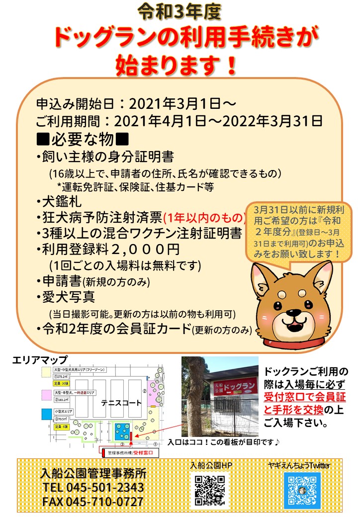 令和3年度(令和3年4月1日~令和4年3月31日まで)のドッグランのご利用案内を