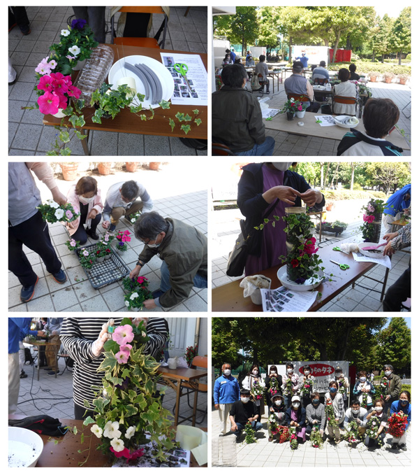 職員の指導の下、ペチュニアのお花をメインに作っていきます。