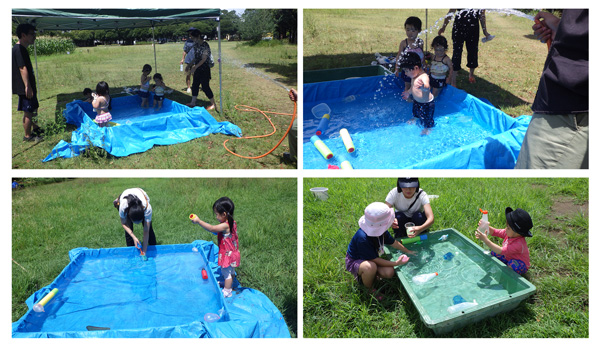 8月のつるみプレイパークは6日と27日に夏にぴったりな『水遊び』を行いました。