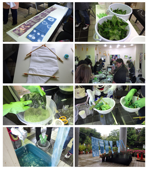 10月9日の藍染め教室の様子 10月9日に行われた藍染め教室の様子です。 公園で生育したタデアイの葉で染める藍染めは人気のイベント。 村松先生から皆さんに配られた紫紺染めのお土産もきれいですね♪ 今回も藍の色が鮮やかな世界でひとつだけの藍染作品が生まれていました。 ご参加いただきましたみなさまありがとうございます。