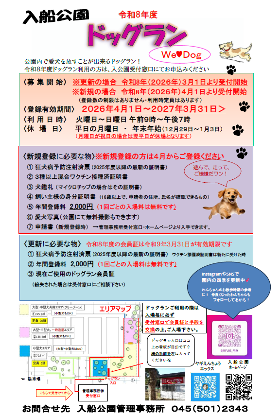 令和8年度ドッグランのご利用案内を掲載いたしました!