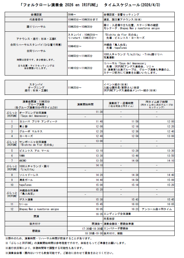 4月25日の第5回 フォルクローレ演奏会が開催されます。