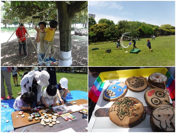 次回のつるみプレイパークは6/3(日)の「デコベーをつくろう」と9(土)の「第6回ベーゴマ大会」になります。