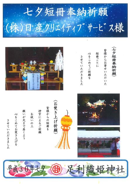 皆さんに書いていただいた短冊の奉納祈願が足利織姫神社にて行われました。