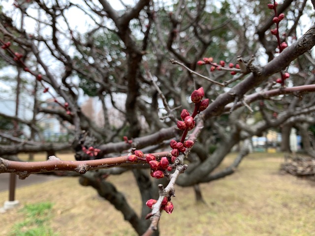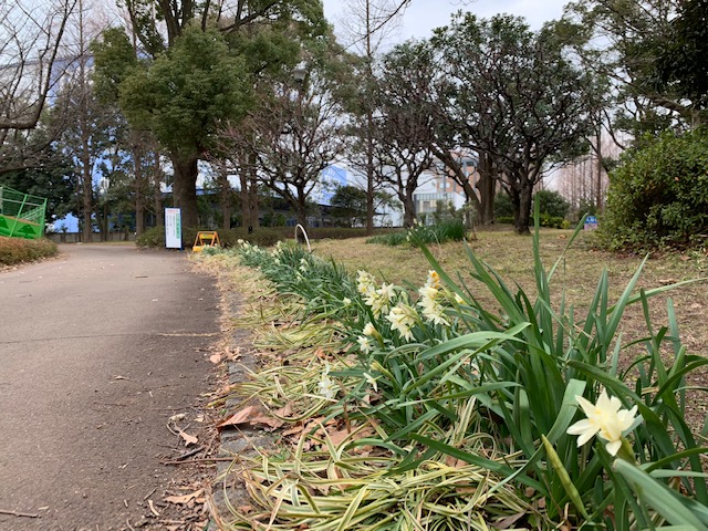 ウメの前にあるスイセンは大分咲き揃ってきました。