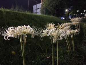 白のヒガンバナが満開でした。
