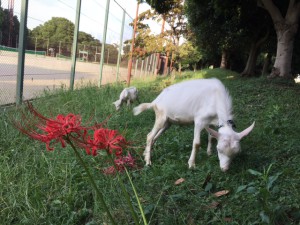 テニスコート裏でヤギを飼育している影響で、