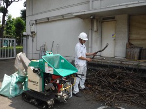 入船公園では公園の周りにそだ柵という木の柵を剪定枝を再利用してつくり、