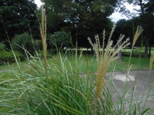 水辺ビオトープのすぐ脇にススキの穂が出ていました。