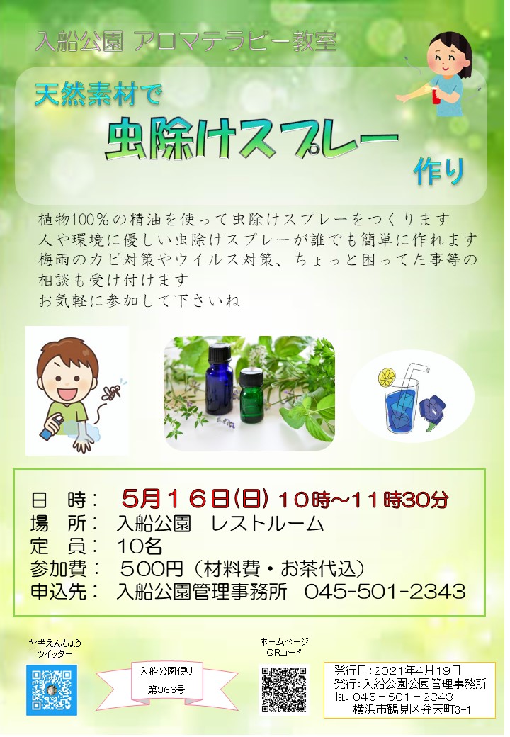 カレンダーに戻る アロマテラピー教室 2021年5月16日 @ 10:00 - 11:30 | 500円 イベント ナビゲーション 定員 10名 詳細 日付: 2021年5月16日 時間: 10:00 - 11:30 参加費: 500円 イベントカテゴリー: イベント 会場 入船公園行事予定
