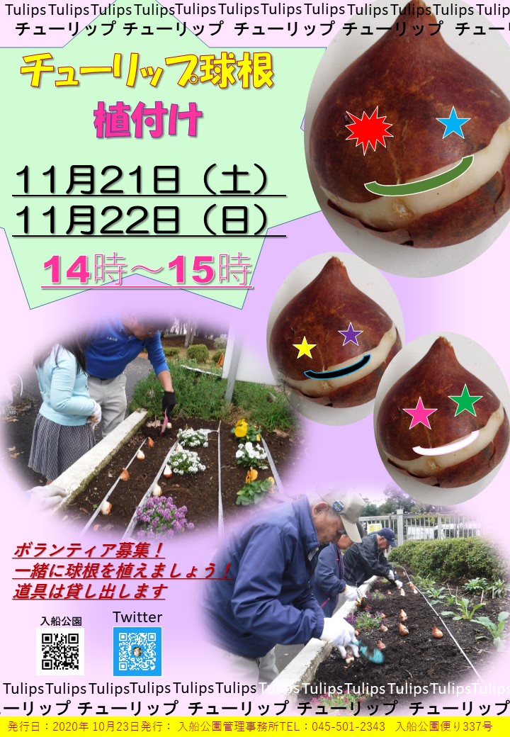カレンダーに戻る チューリップ植付 2020年11月21日 @ 14:00 - 15:00 | 無料 イベント ナビゲーション 詳細 日付: 2020年11月21日 時間: 14:00 - 15:00 参加費: 無料 イベントカテゴリー: イベント 会場 入船公園行事予定