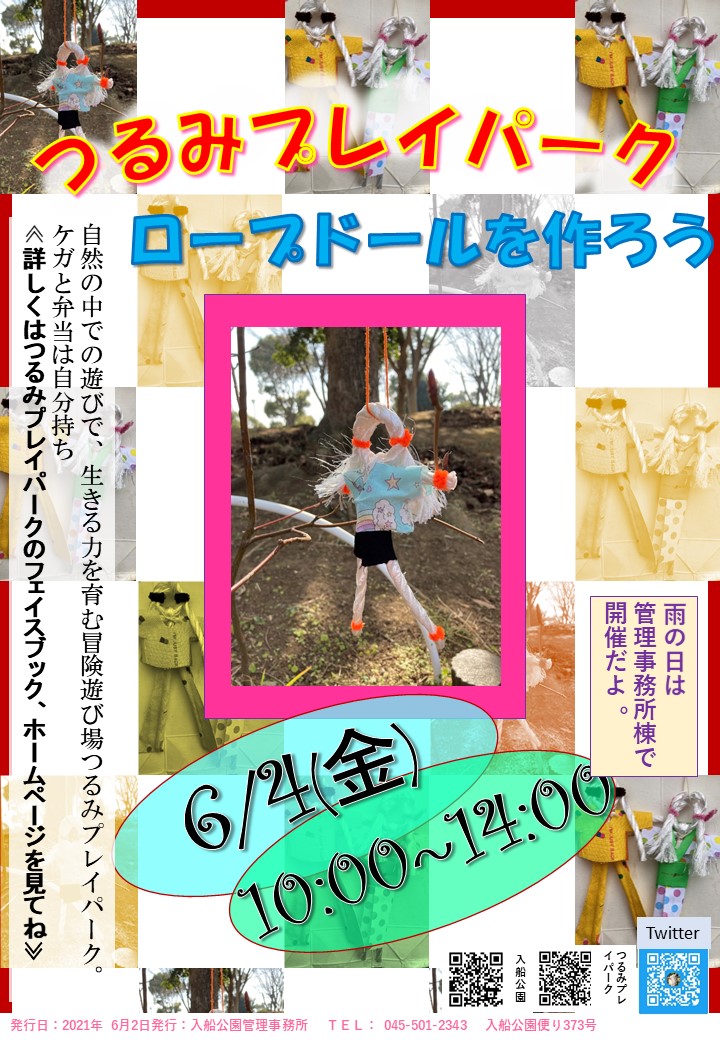 カレンダーに戻る ロープドールを作ろう 2021年6月4日 @ 10:00 - 14:00 | 無料 イベント ナビゲーション 詳細 日付: 2021年6月4日 時間: 10:00 - 14:00 参加費: 無料 イベントカテゴリー: イベント 主催者 つるみプレイパーク メール: tsurumipp@gmail.com Web サイト: https://sites.google.com/view/tsurumipp/home 会場 入船公園行事予定