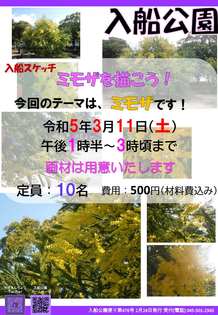 カレンダーに戻る 入船スケッチ 2023年3月11日 @ 13:30 - 15:00 | 500円 イベント ナビゲーション 詳細 日付: 2023年3月11日 時間: 13:30 - 15:00 参加費: 500円 イベントカテゴリー: イベント 会場 入船公園行事予定