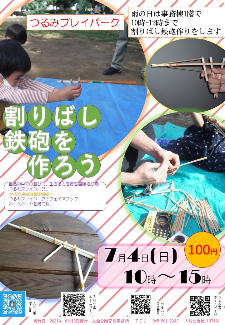 カレンダーに戻る 割りばしてっぽうを作ろう 2021年7月4日 @ 10:00 - 15:00 | 100円 イベント ナビゲーション 詳細 日付: 2021年7月4日 時間: 10:00 - 15:00 参加費: 100円 イベントカテゴリー: イベント 主催者 つるみプレイパーク メール: tsurumipp@gmail.com Web サイト: https://sites.google.com/view/tsurumipp/home 会場 入船公園行事予定