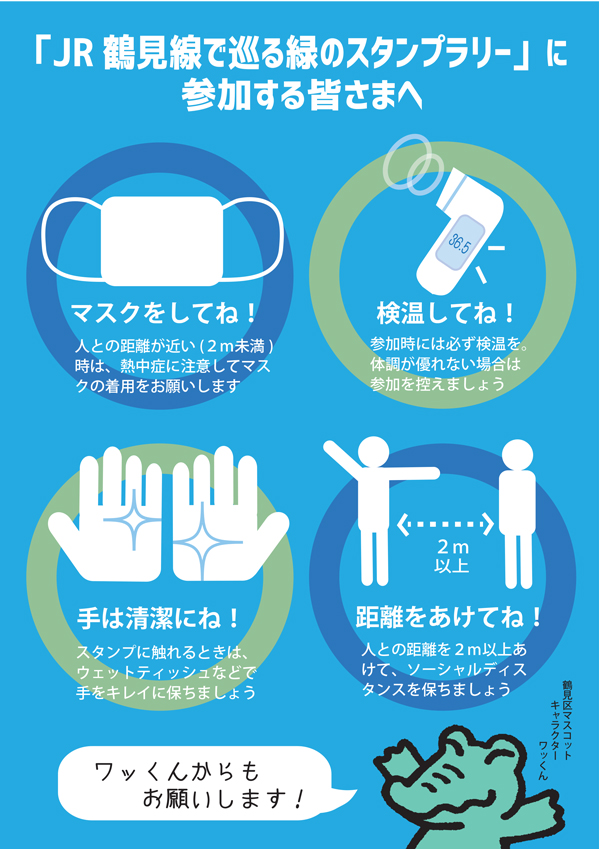 カレンダーに戻る 第5回『JR鶴見線で巡る緑のスタンプラリー2021』 2021年4月29日 @ 09:00 - 2021年5月9日 @ 18:00 | 無料 イベント ナビゲーション スタンプ台設置 各日 9時~17時 スタンプ帳、景品配布 各日9時~18時 詳細 開始: 2021年4月29日 @ 09:00 終了: 2021年5月9日 @ 18:00 参加費: 無料 イベントカテゴリー: イベント Web サイト: https://www.city.yokohama.lg.jp/tsurumi/shokai/odekake/midokoro/gny.html 会場 入船公園行事予定