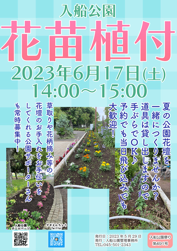 カレンダーに戻る 花苗植付 2023年6月17日 @ 14:00 - 15:00 | 無料 イベント ナビゲーション 詳細 日付: 2023年6月17日 時間: 14:00 - 15:00 参加費: 無料 イベントカテゴリー: イベント 会場 入船公園行事予定