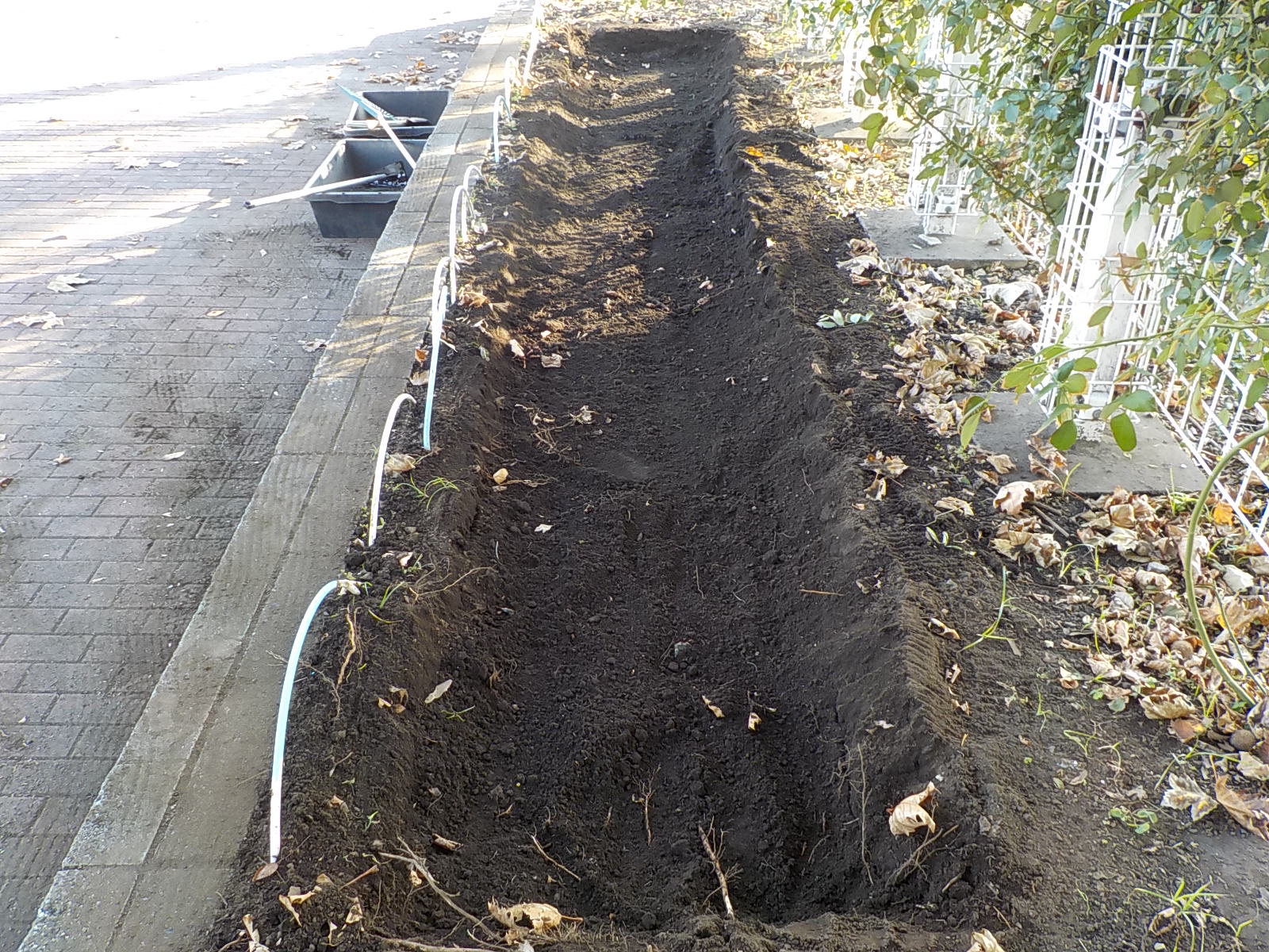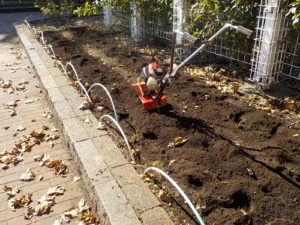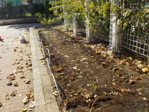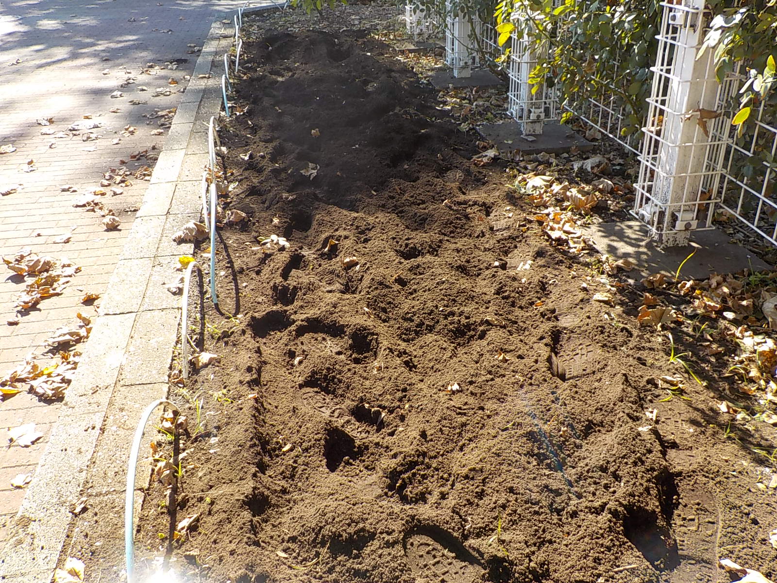 春に向けての花壇作り <花壇作り> サンパチェンスの時期も終わり、春に向けて花壇作りを始めました。 まずは花壇の準備から 耕耘作業で土がフカフカに! 四角く型を取ったら 土を出して球根を植える準備へ! ここにチューリップの球根を植えて土を被せる予定です。 (タナカ)