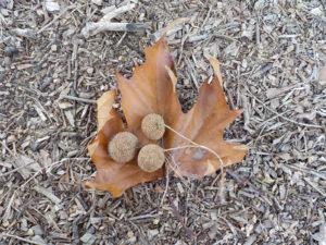 秋になると可愛らしい実と包装紙のように丈夫で大きな葉っぱが落ちてきます。