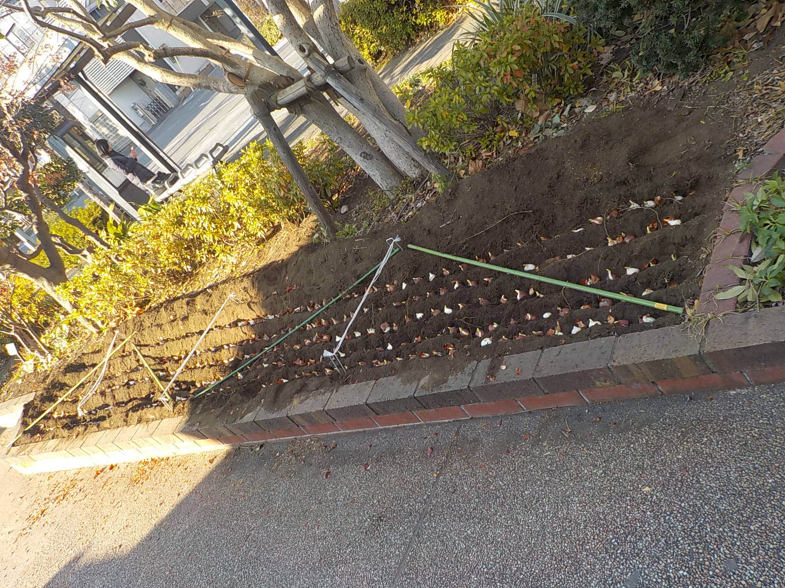 本日、公園事務所前に新しく、花壇を作りました。
