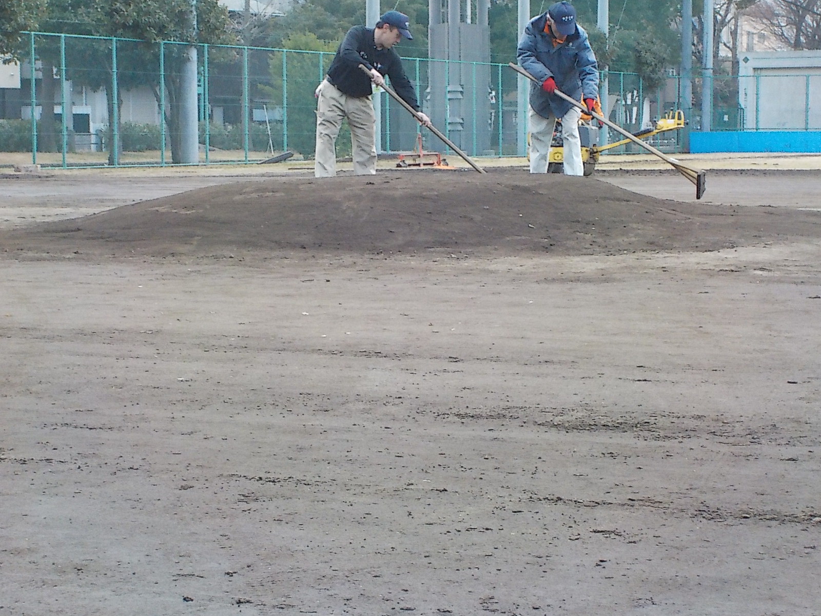 冬期の野球場オープンに向け、スタッフ一同で野球場冬期整備を進めています。