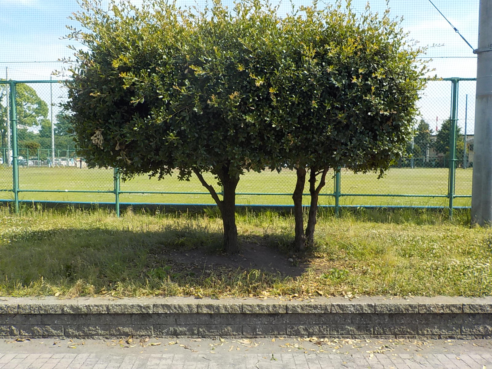 本日は、野球場の外周の植栽地にあるウバメガシの剪定を実施しました。