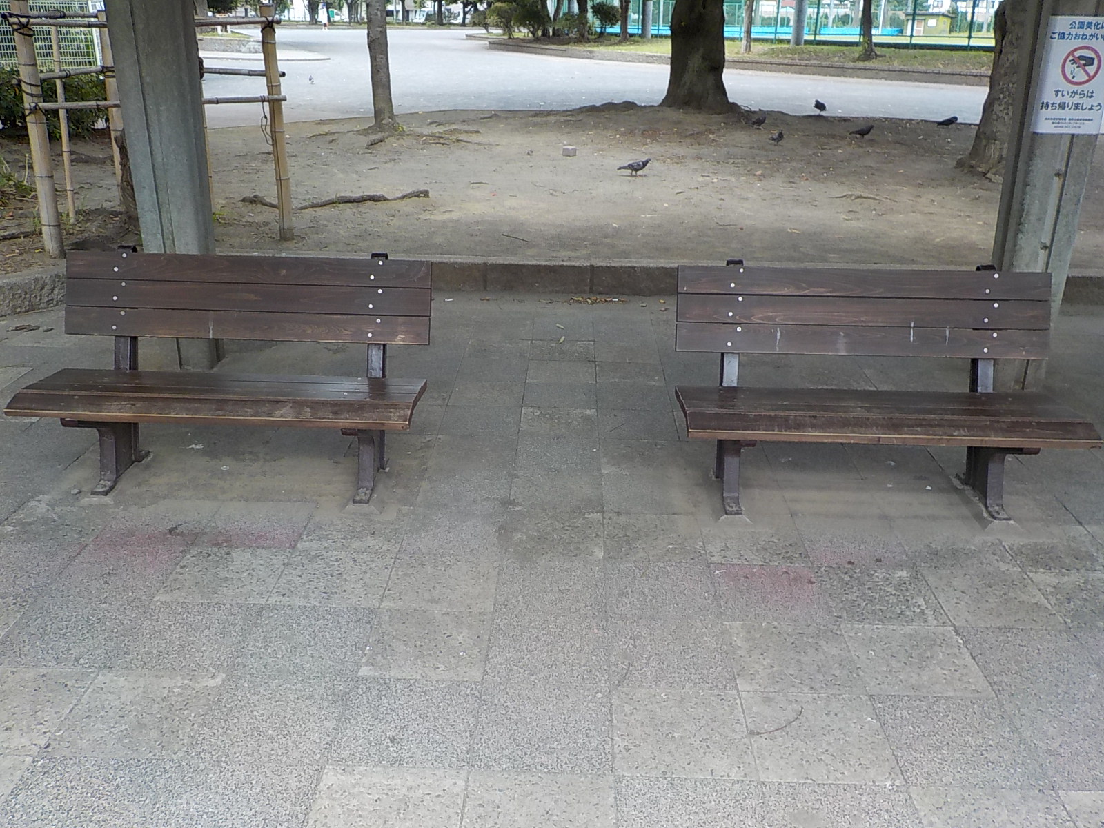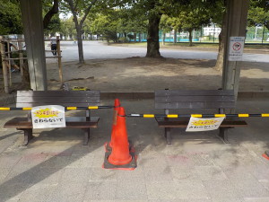 公園内のベンチを順に塗装中です。