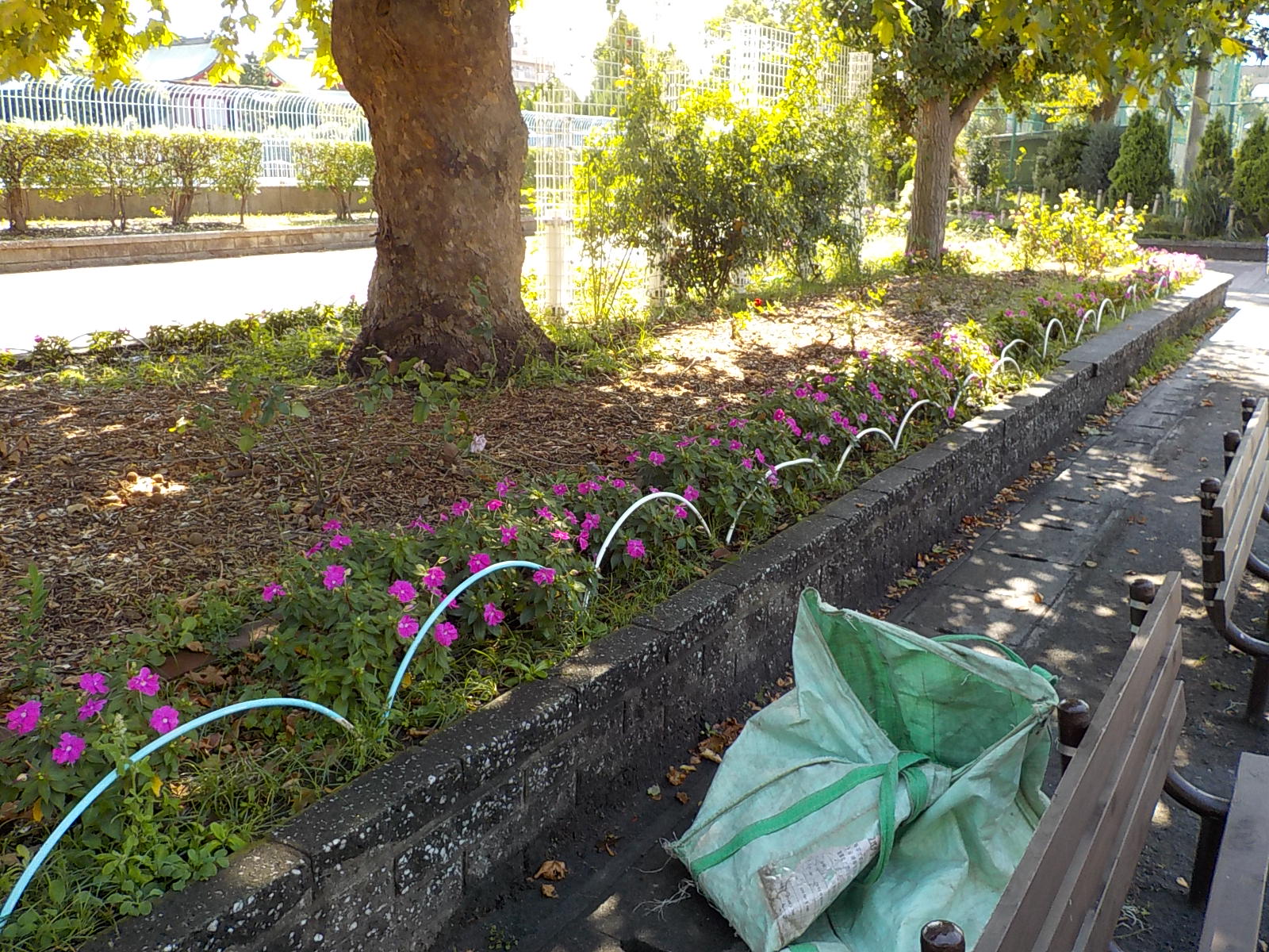 本日は、自由広場にある花壇の除草を行いました。