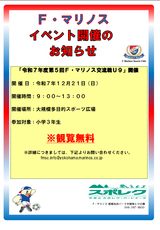 12月21日(日)「令和7年度第5回F・マリノス交流戦U9」