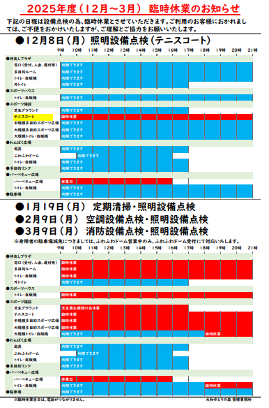 2025年度下半期(12月~3月)臨時休業のお知らせ