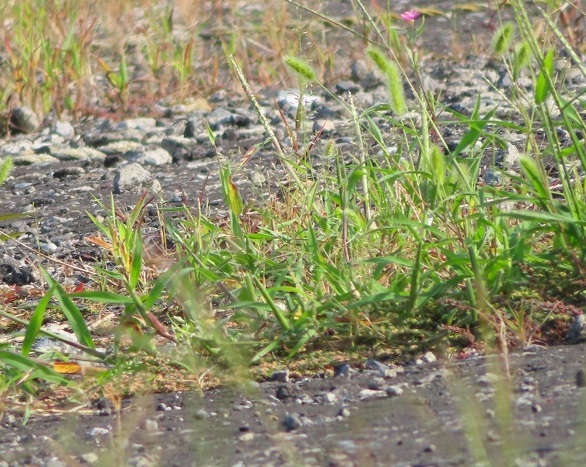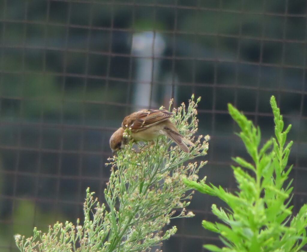 スズメも、オオアレチノギクのタネをもりもり食べます。