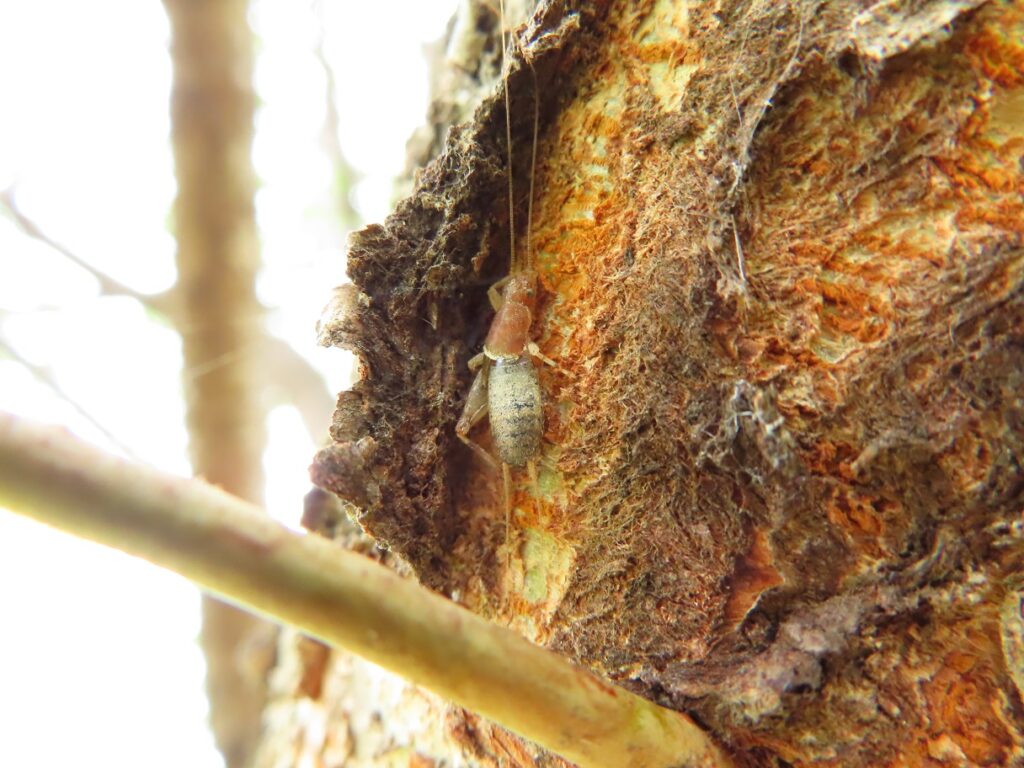 木の皮にはカネタタキという、コオロギの仲間がいました。