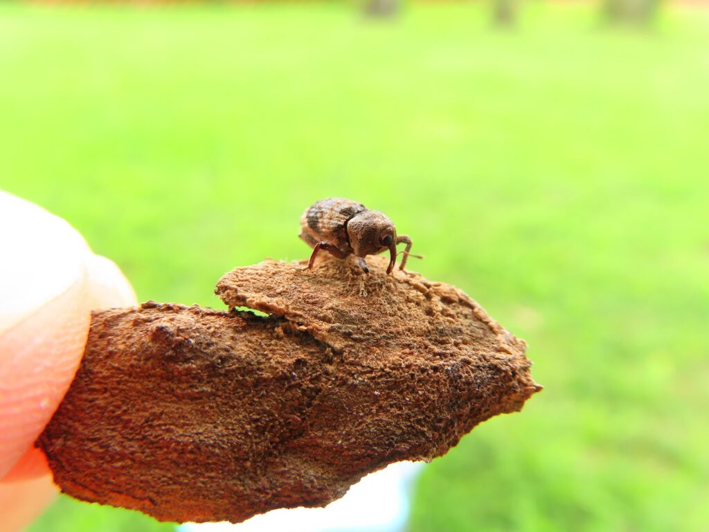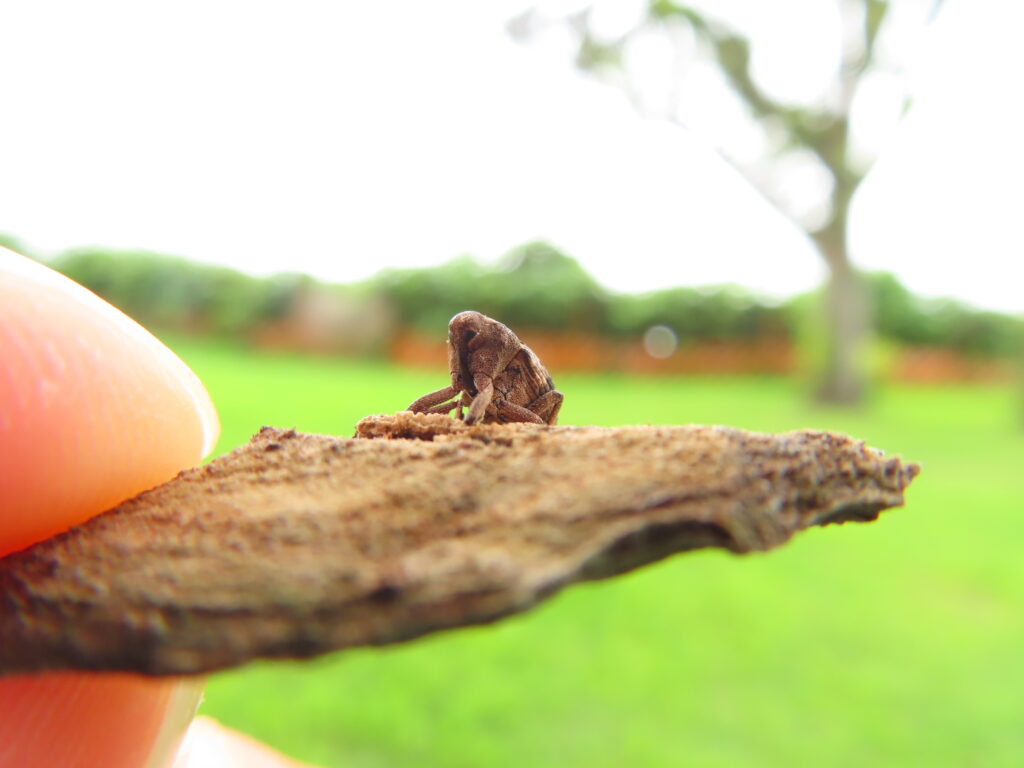 木の皮の裏にいたのはヒメクチカクシゾウムシという、
