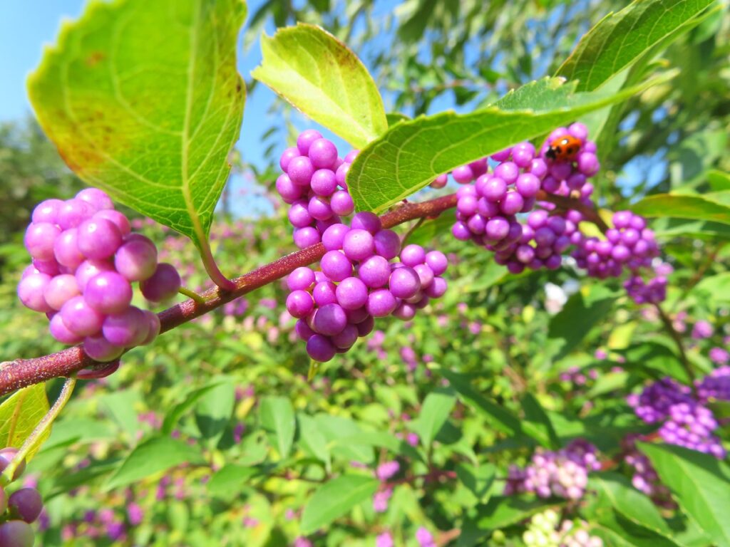 テニスコートの周りでは、コムラサキの実がきれいです。