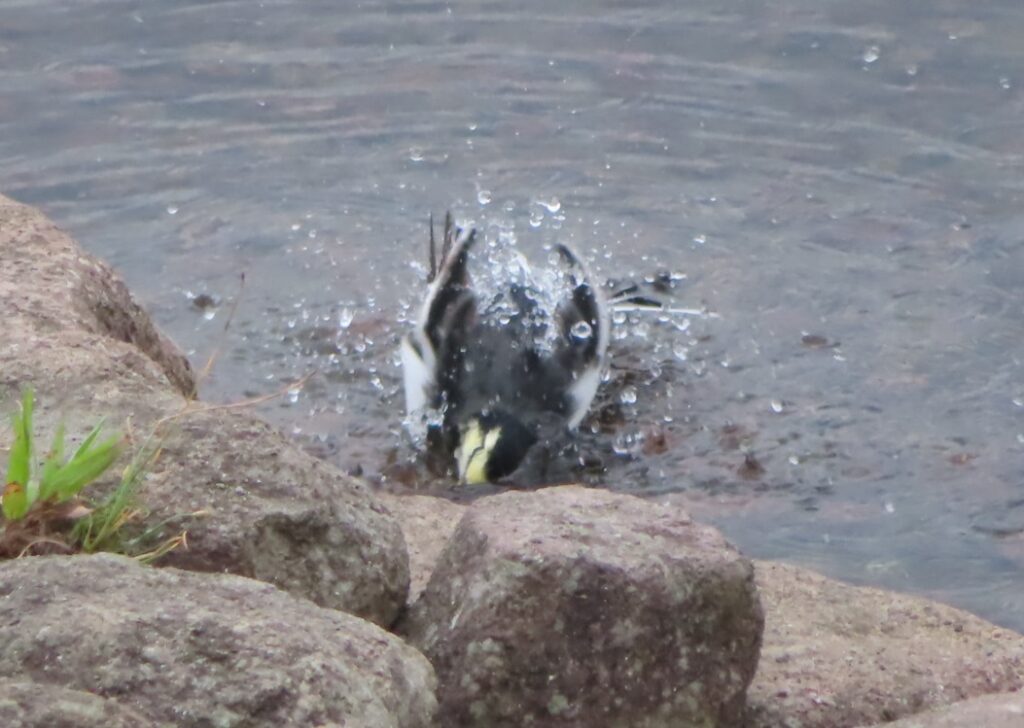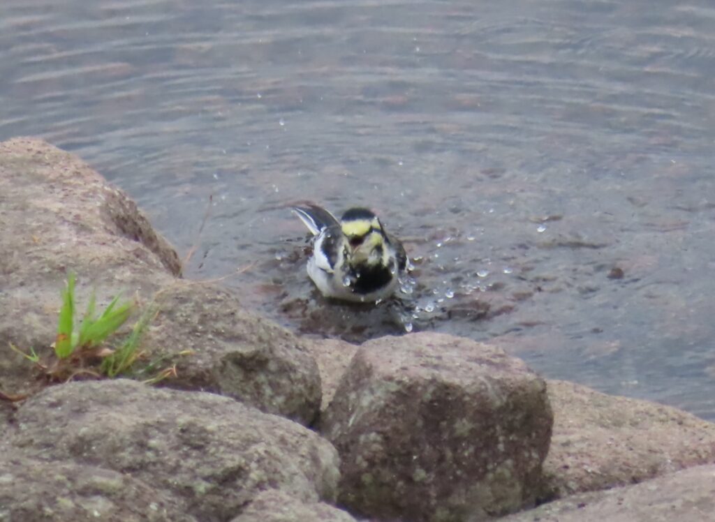 そんなハクセキレイの水浴びを修景池の北で目撃!