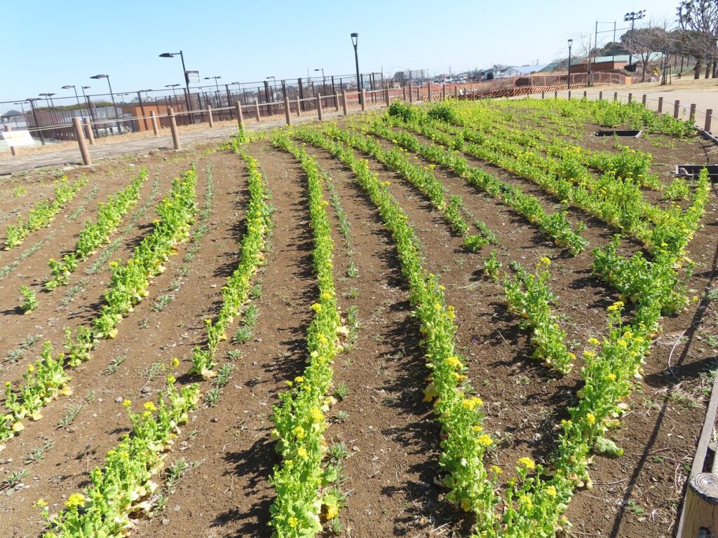 テニスコート前の花壇にこっそり植えていたナノハナ