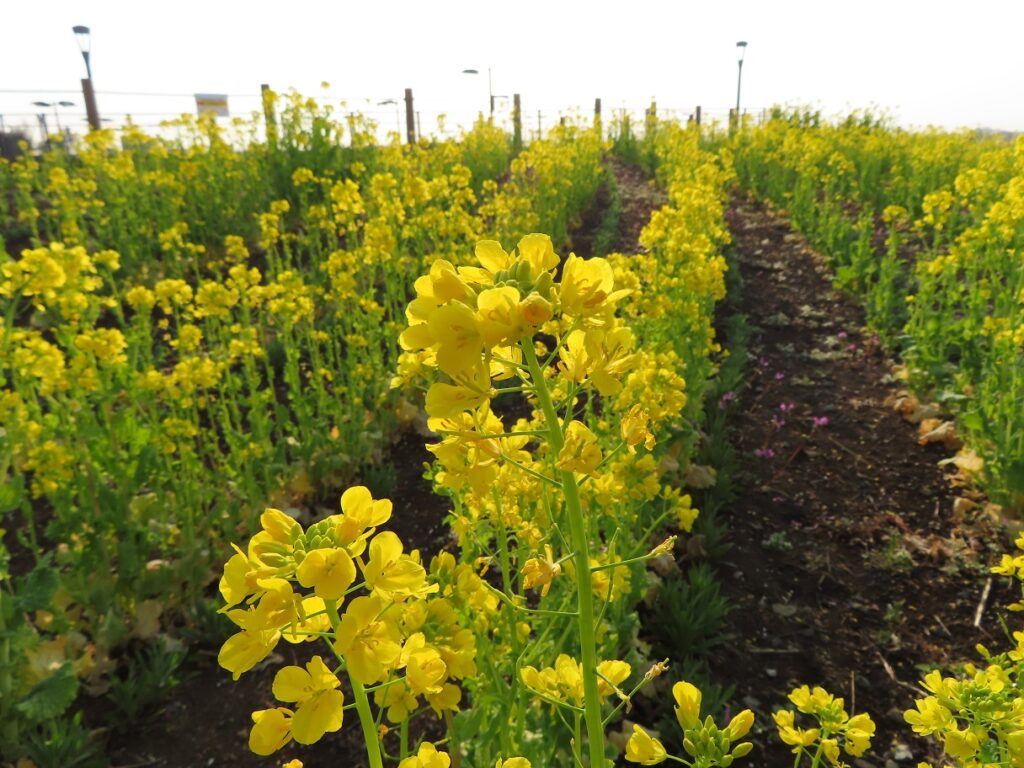 テニスコート前のナノハナが、もりもり咲いてきました。