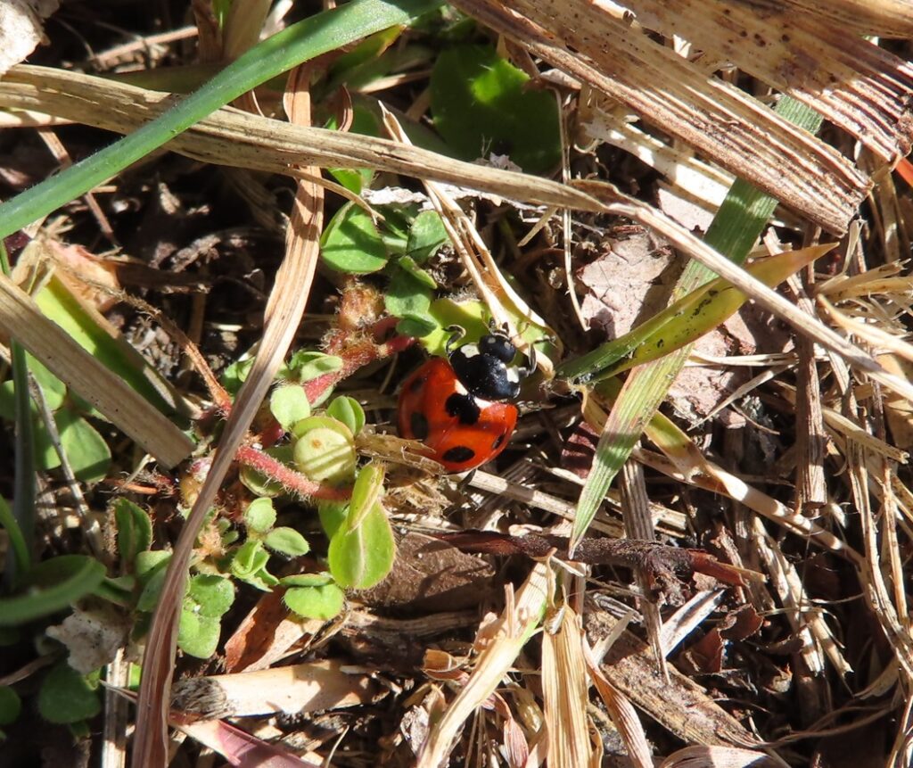 芝地を見ていると、ナナホシテントウがバタバタ走る姿を見かけます。