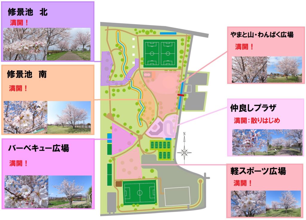 早く咲き始めた「仲良しプラザ付近」は、散り始める花が出てきました。